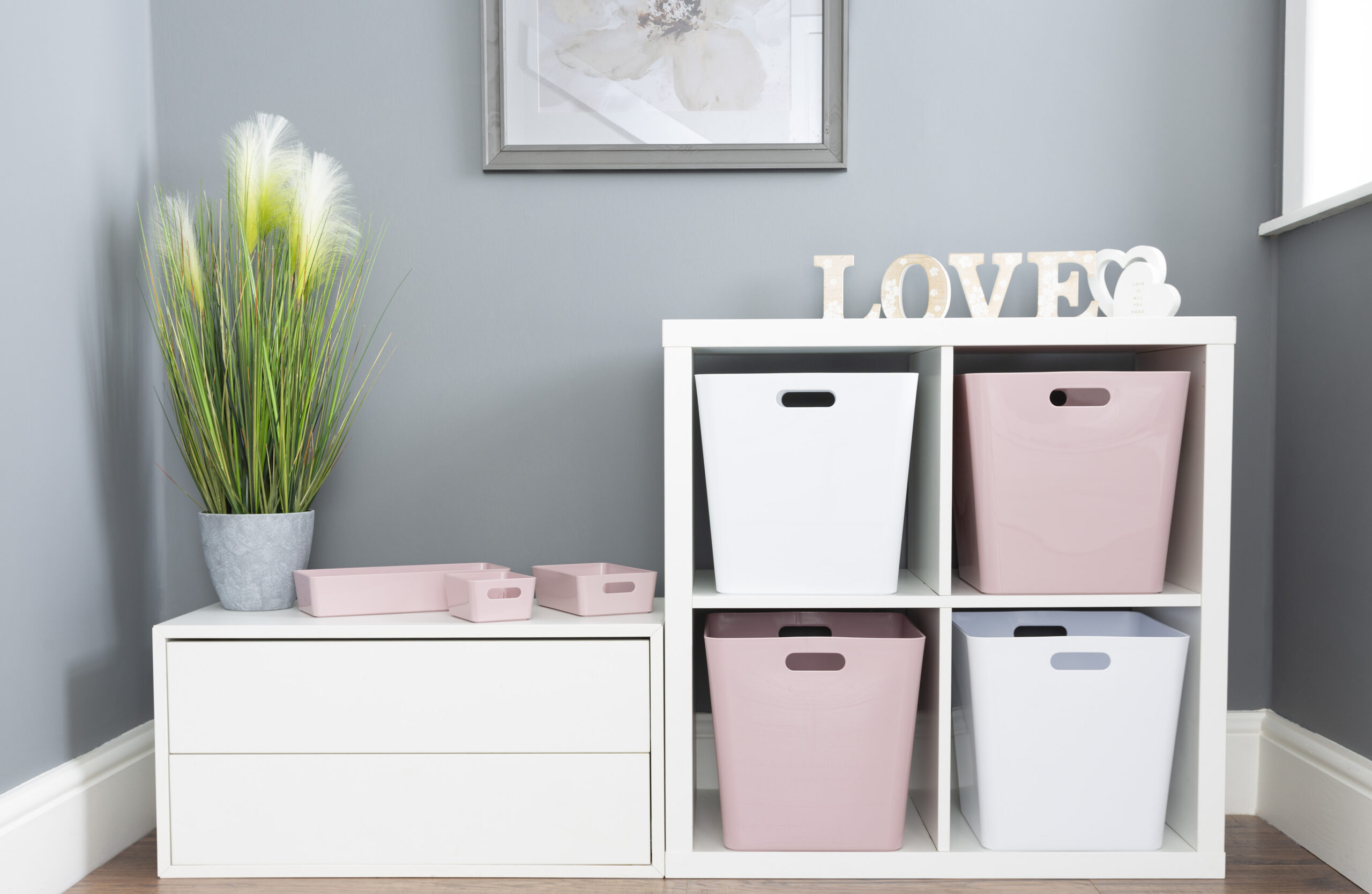 Wham, the household goods manufacturer, can help you with this. They’ve designed the Studio Cube, which is a very neat 30cm x 30cm storage basket with handles. Wipe clean and nestable, the best part of it is that it perfectly fits the popular modular shelving units available in retailers – and those units come in a wide variety of shapes, sizes, colours and configurations to fit any room perfectly.