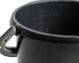 Strong and durable household bucket with extra grip carry handle and pouring lip. Graduated capacity markers on the inside.
