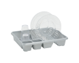 Stylish large dish drainer. Holds up to 12 plates with two handy cutlery drainer compartments and additional drainer space for cups and glasses. Cleverly designed with integral handles. Strong, durable and easy to maintain.